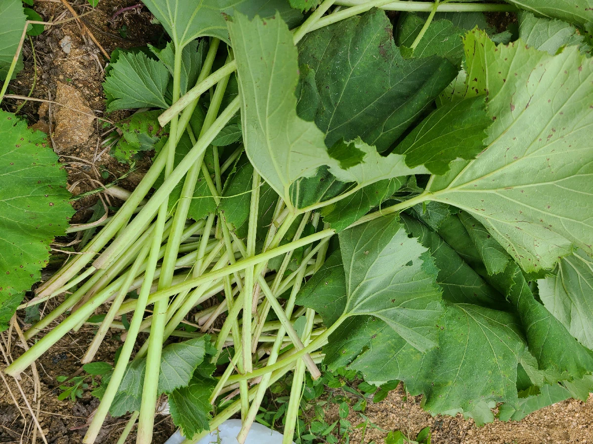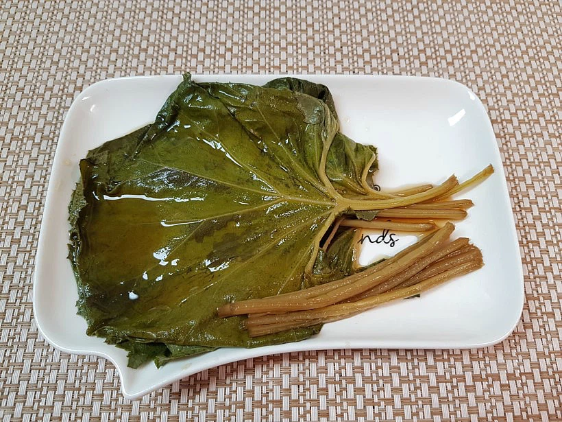 2) 줄기(머위대) : 늦봄 또는 여름에 채취하여 끓는 물에 적당히 삶은 후 겉껍질을 벗겨 나물 재료로 쓰거나 잎과 함께 즙을 내어 마십니다. 특히 머위대는 들깨 볶음으로 요리해 먹으면 고소하고 아삭한 식감이 좋습니다.